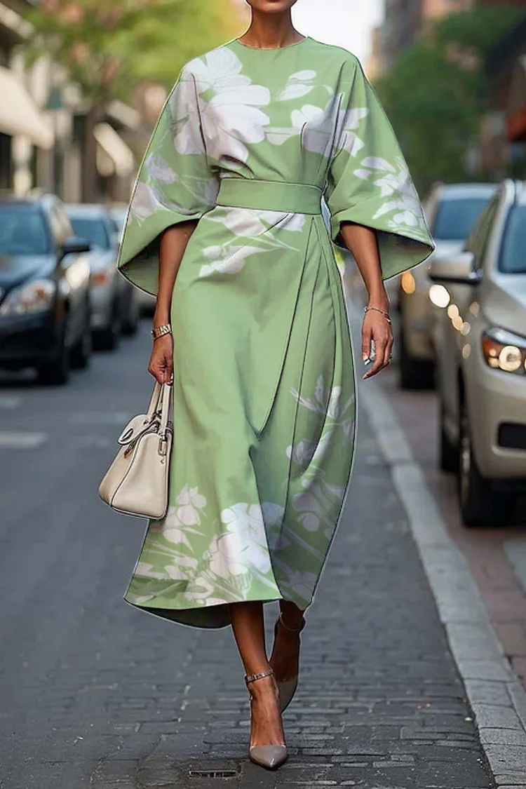 Elegant Floral Print Midi Dress$40.29 USD -