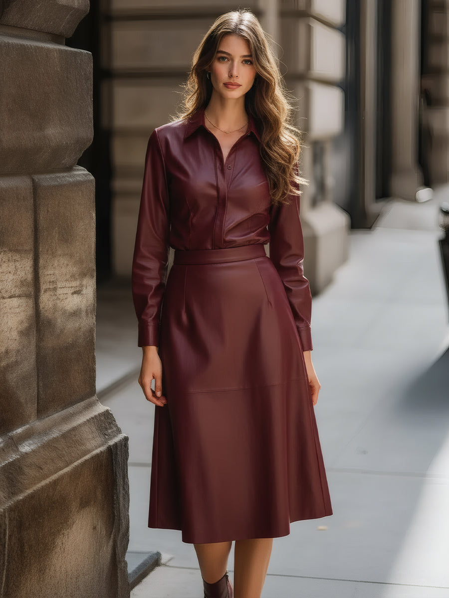 Burgundy Faux Leather Shirt Dress$83.17 USD -