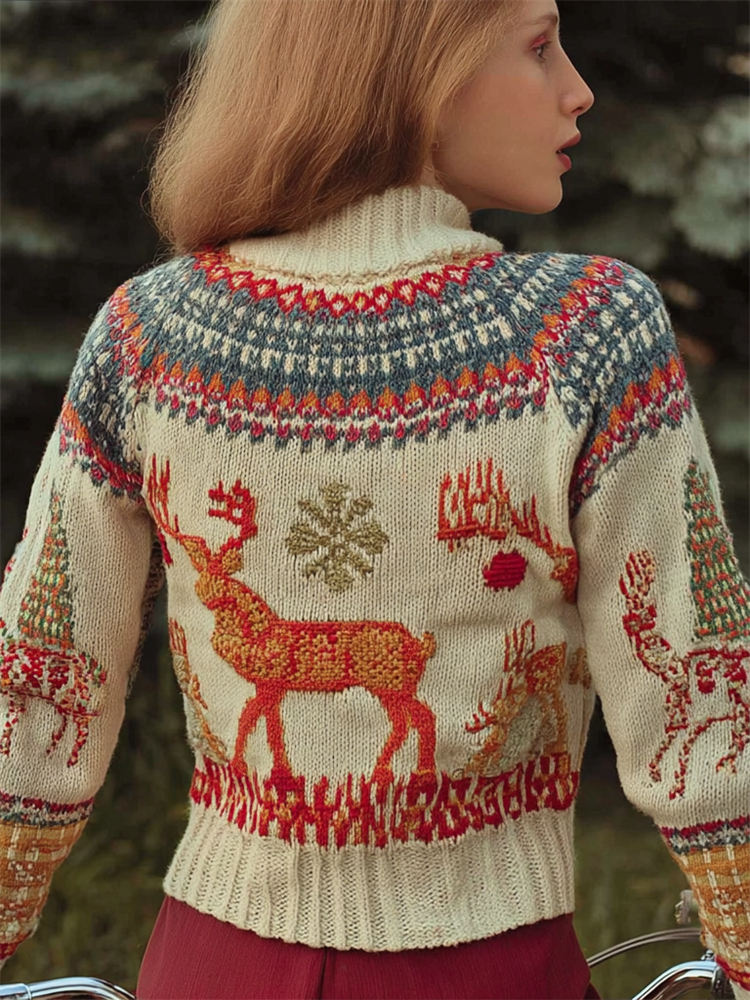 Vintage 80s Christmas Reindeer Cozy Turtleneck Isle Sweater$37.99 USD -