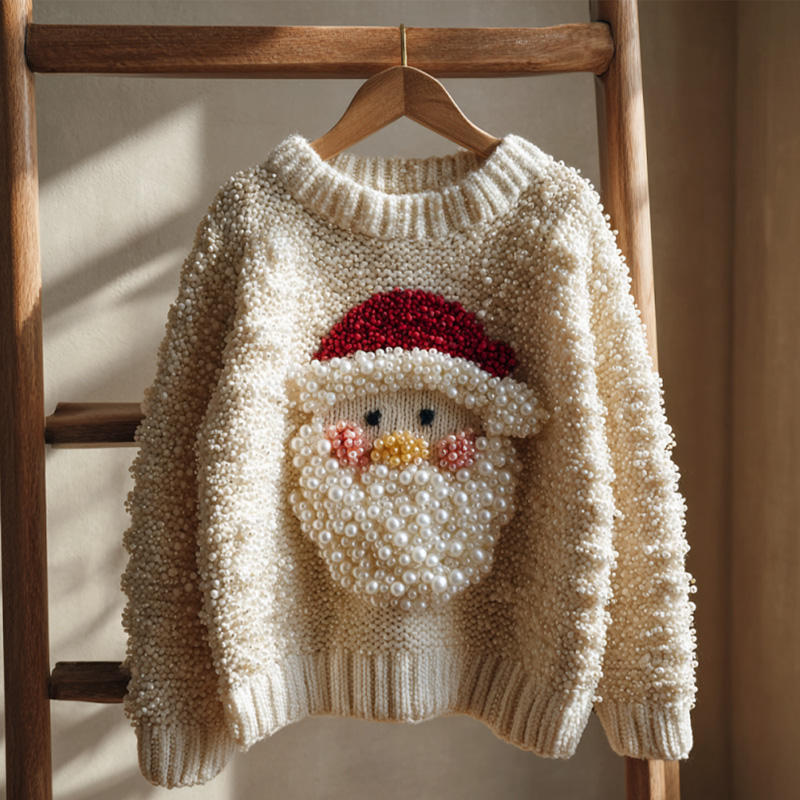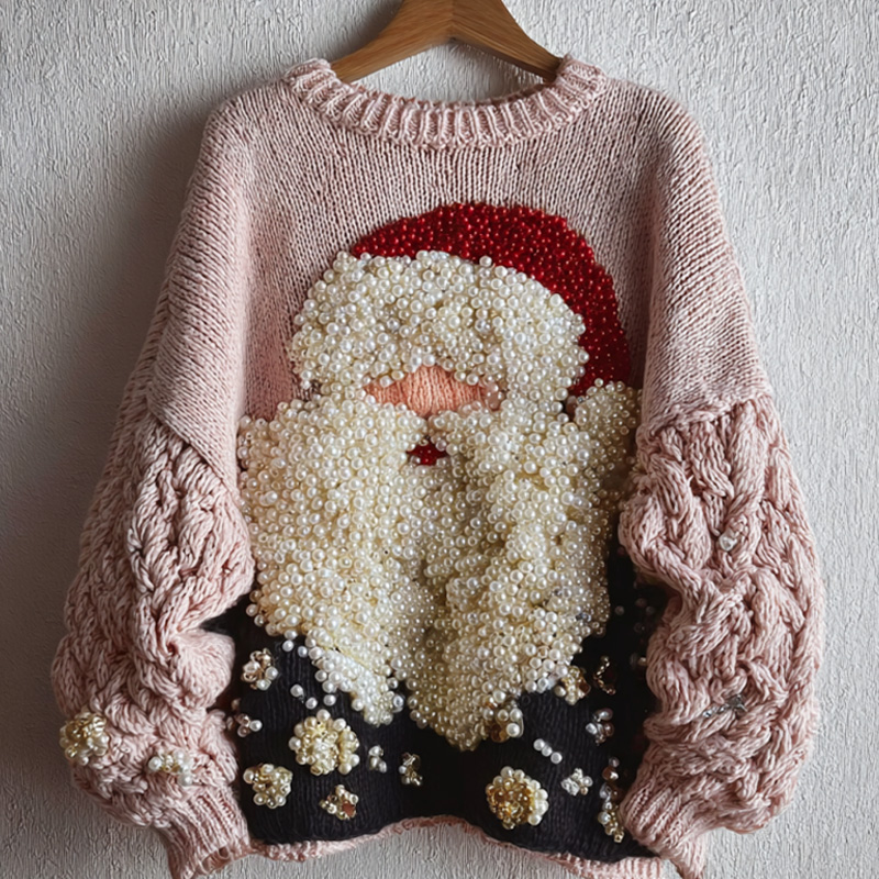 Santa Claus Embroidered Pearl Crew Neck Sweater$34.99 USD -