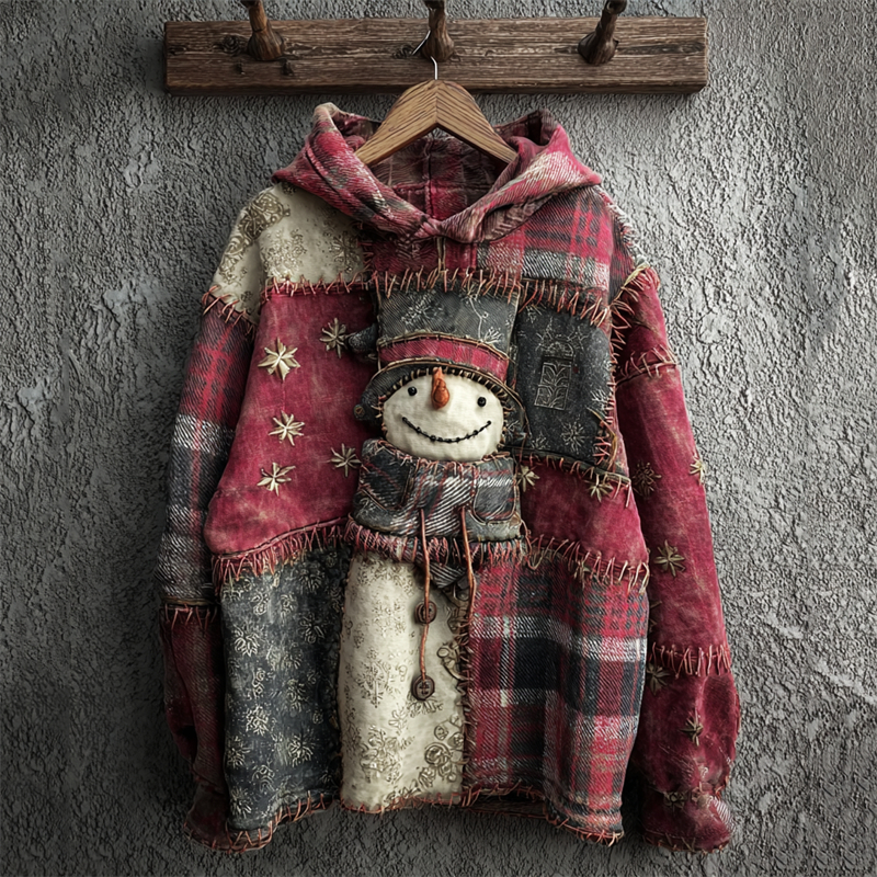 Vintage Snowman Plaid Colorblock Patchwork Hoodie$30.99 USD -