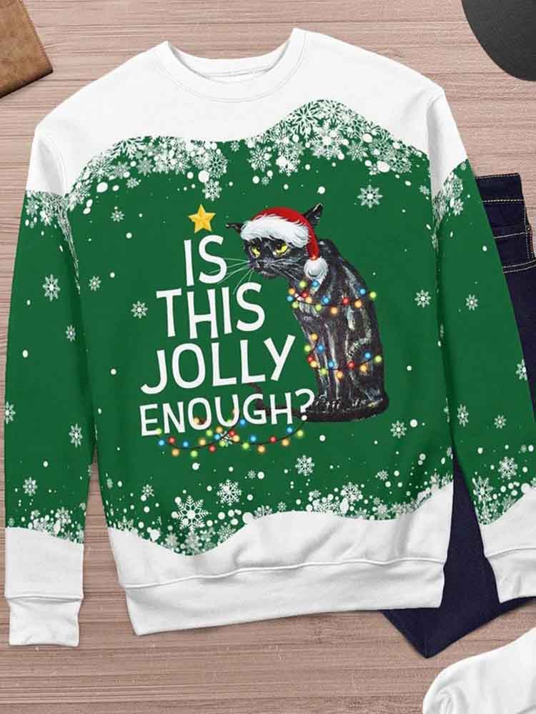 Is This Jolly Enough The Cat Long Sleeve Sweatshirt$26.99 USD -