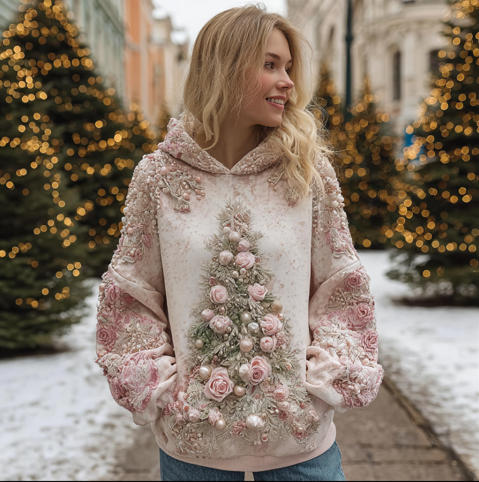Women's Retro Christmas Tree Pattern Casual Hoodie$36.99 USD -
