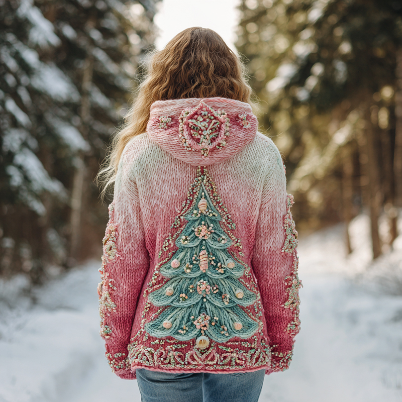 Pearl Christmas Tree Ombre Hooded Sweater$36.99 USD -
