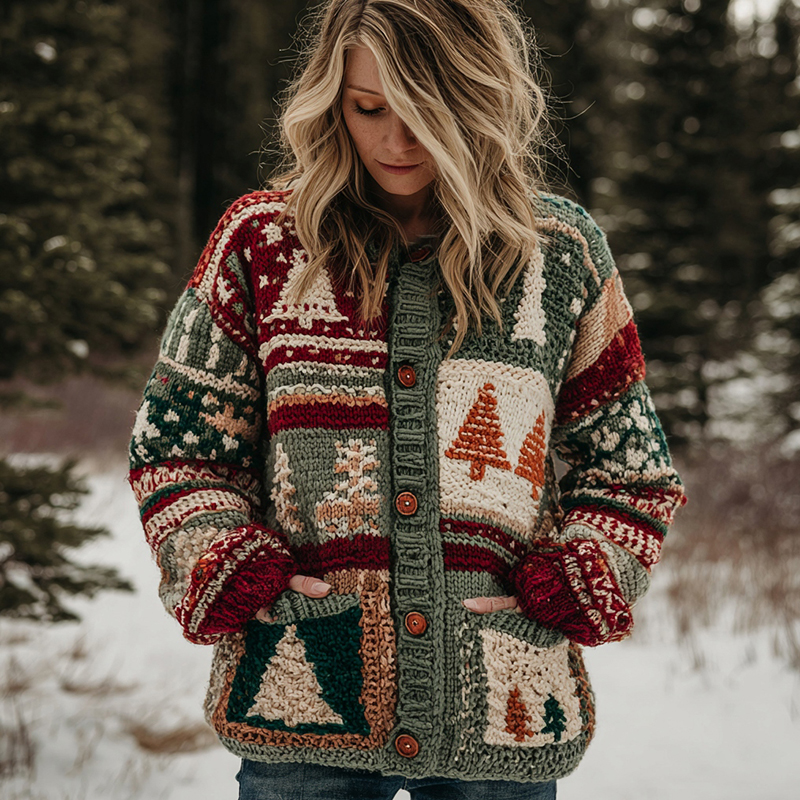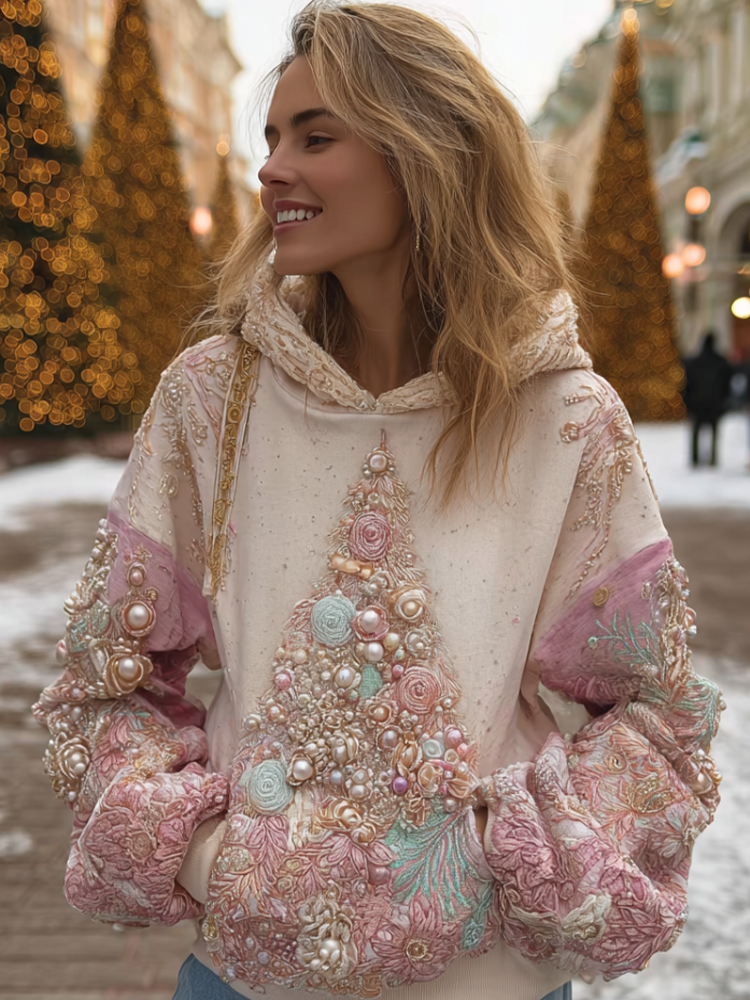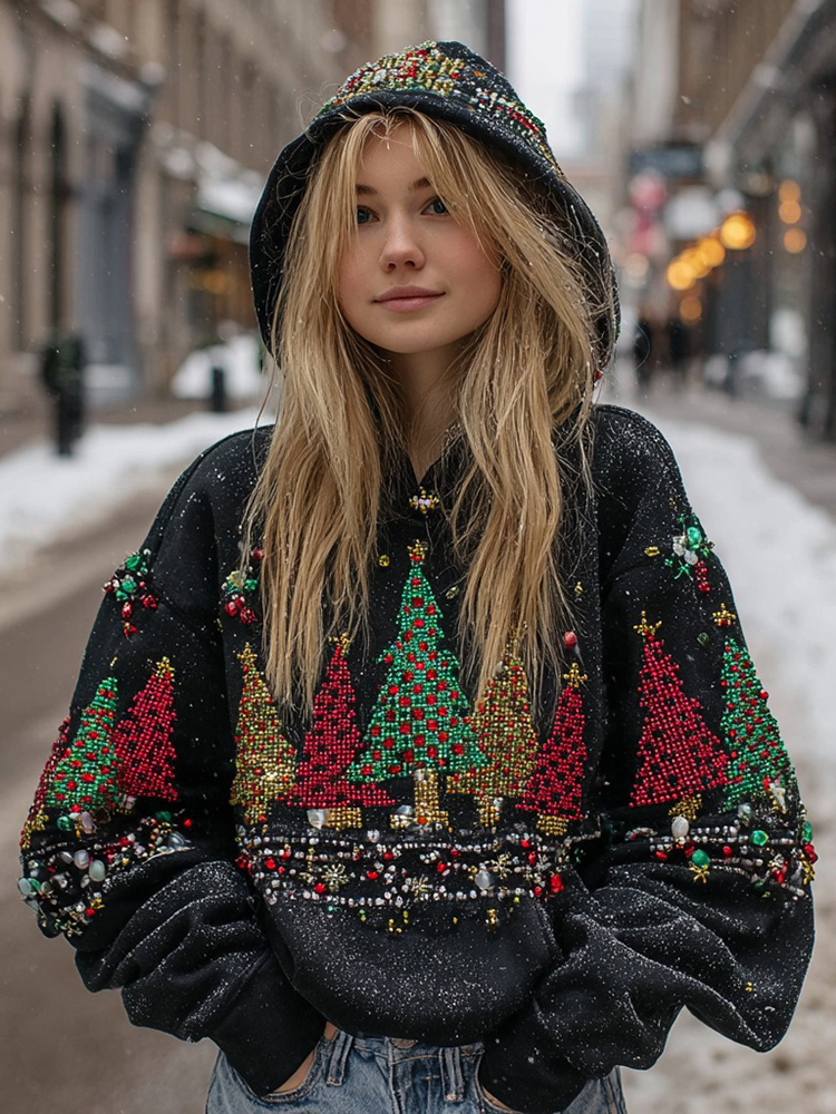Women's Retro Christmas Tree Pattern Casual Hoodie$30.99 USD -