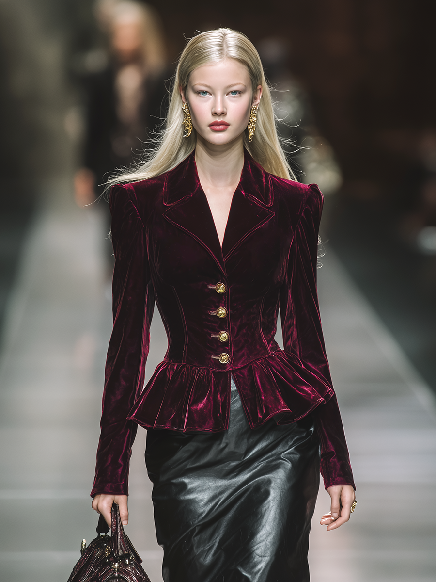 Elegant Retro Ruffled Single-breasted Velvet Blazer$88.70 USD -
