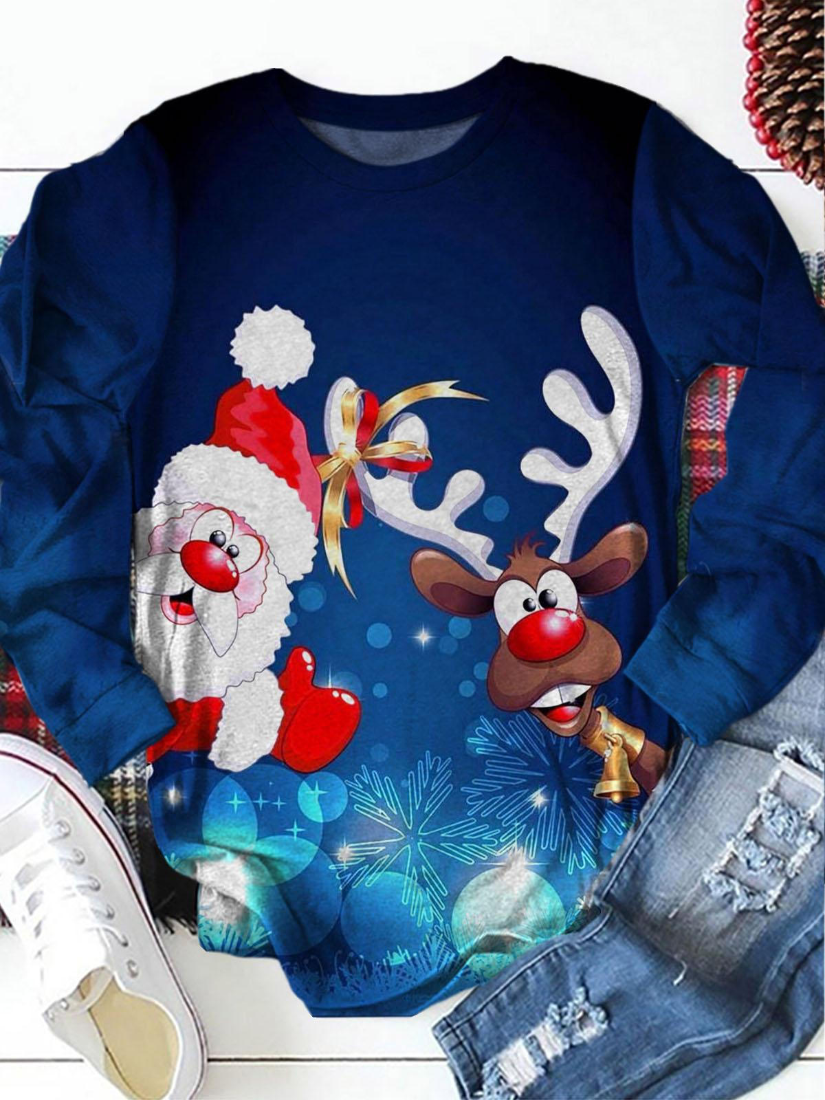 Deer and Santa Print Long Sleeve Casual Top$28.34 USD -