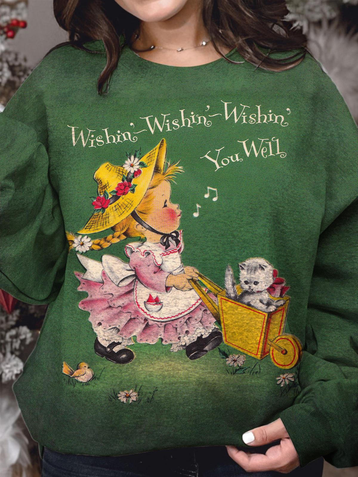 Christmas Cute Girls Printed Round Neck Long Sleeve Tops$25.19 USD -