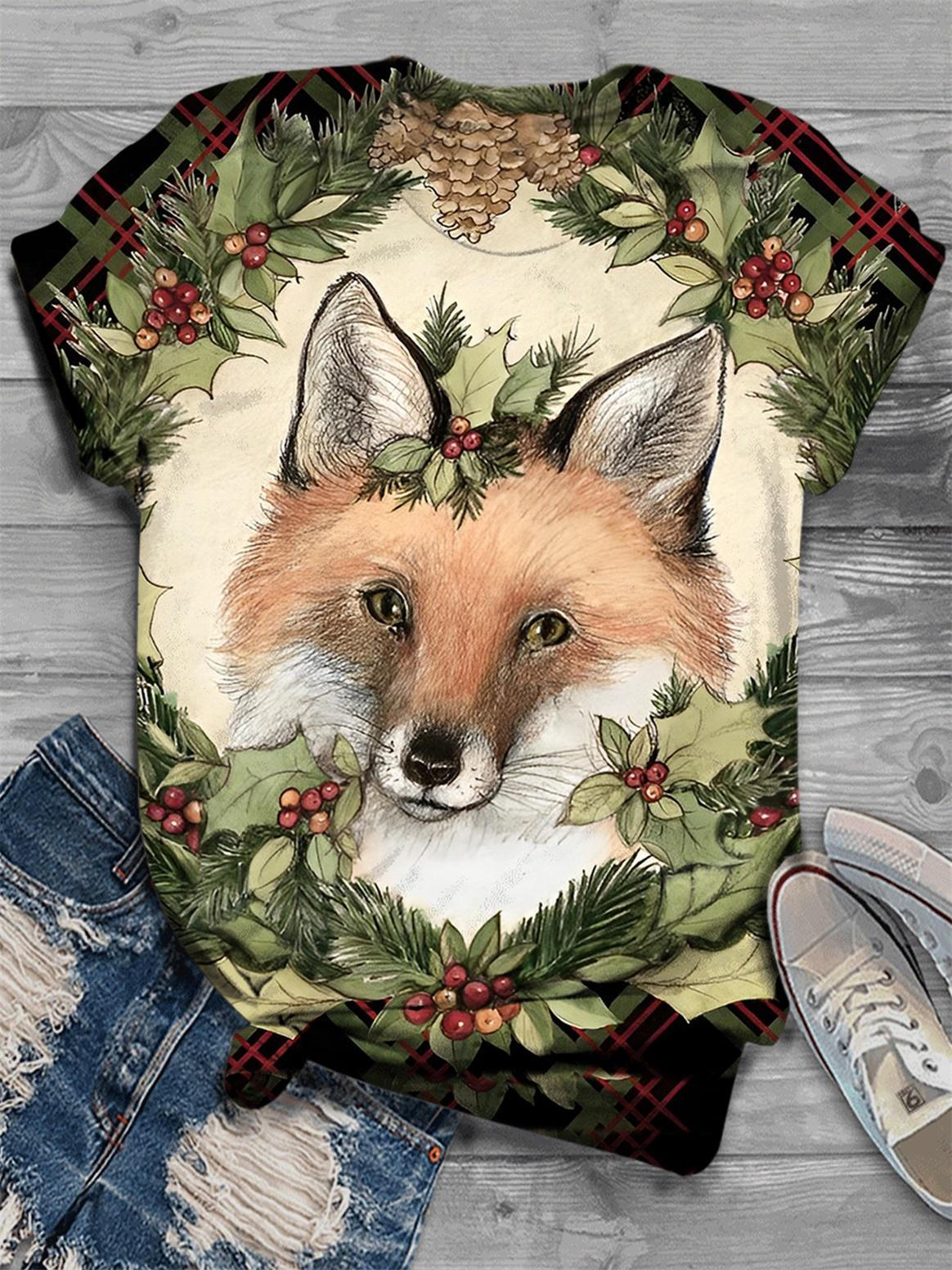 Women's Christmas Fox Print T-Shirt$20.99 USD -