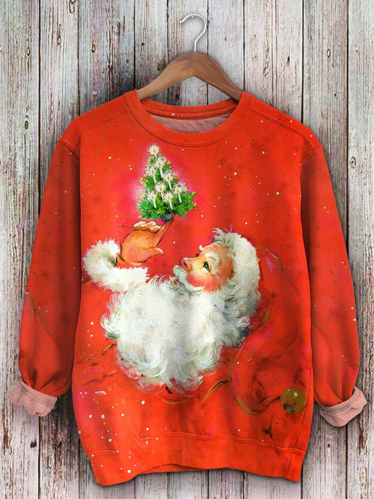 Santa Christmas Tree Candle Long Sleeve Top$28.34 USD -