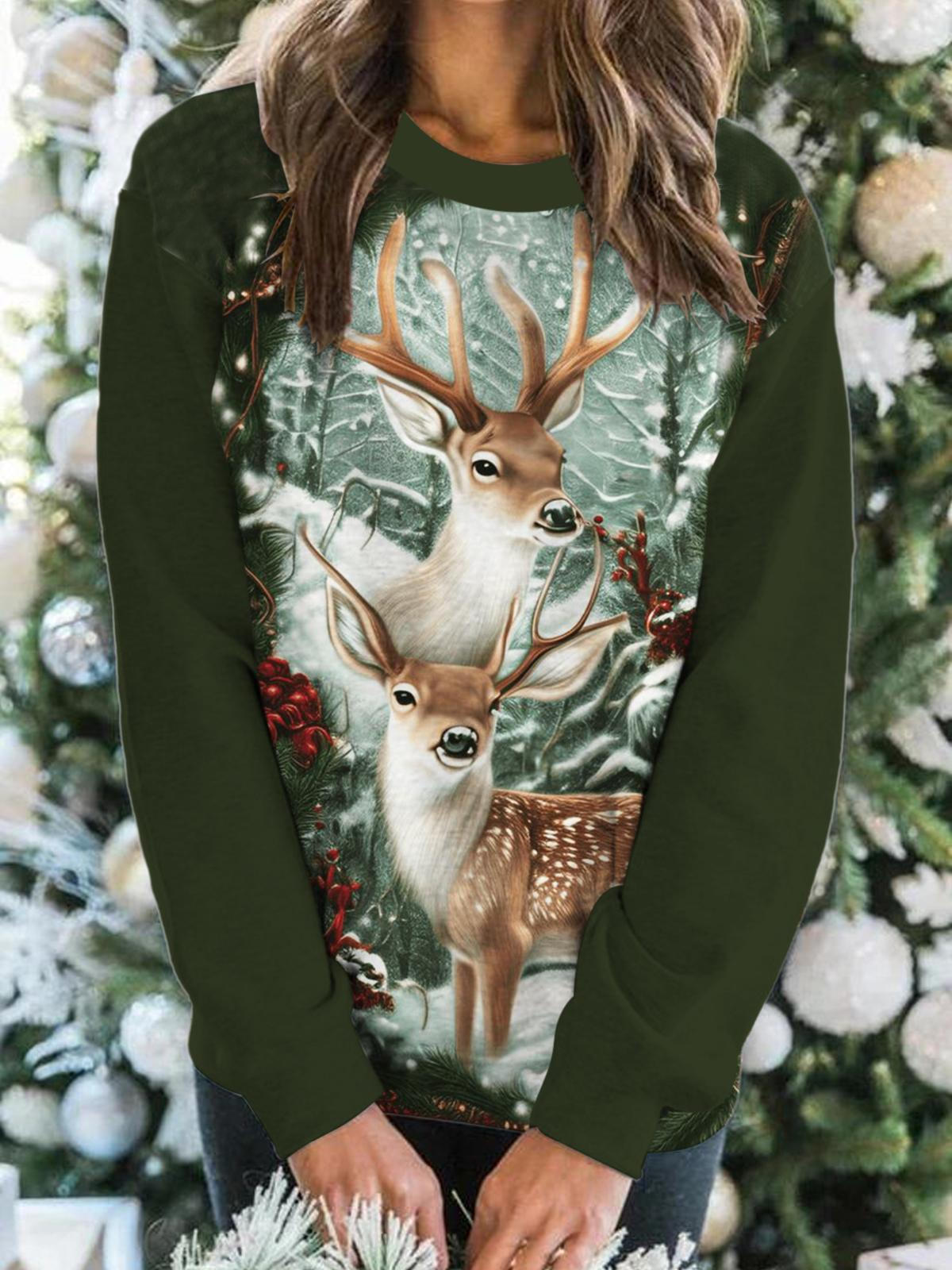 Women's Winter Deer Print Long Sleeve Top$28.34 USD -