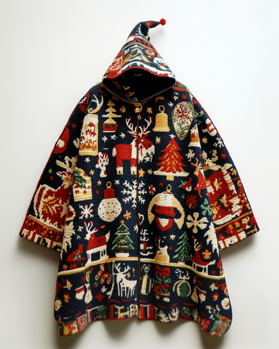 Christmas elements pattern long wizard cape 6be8$36.99 USD -