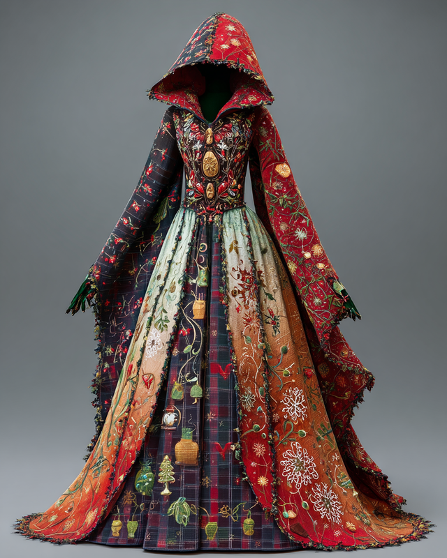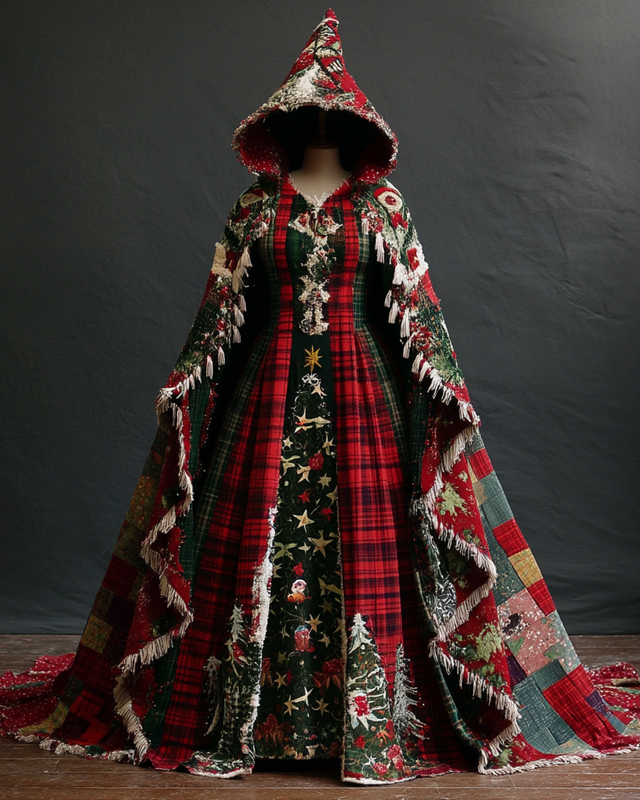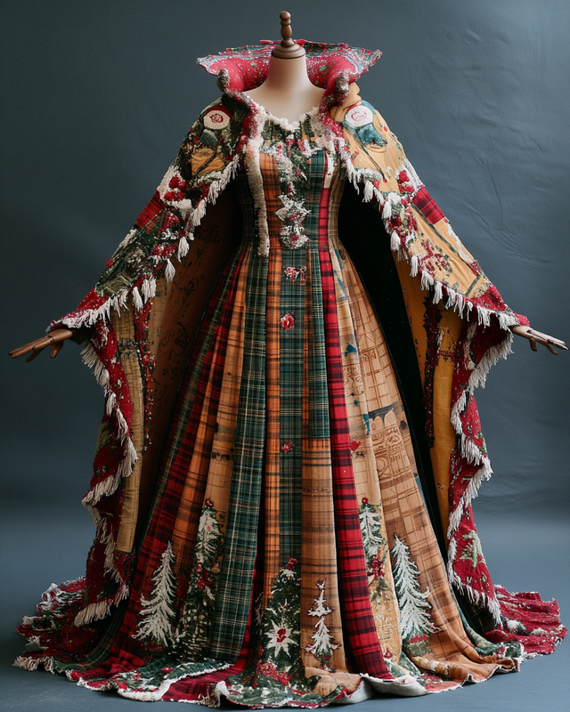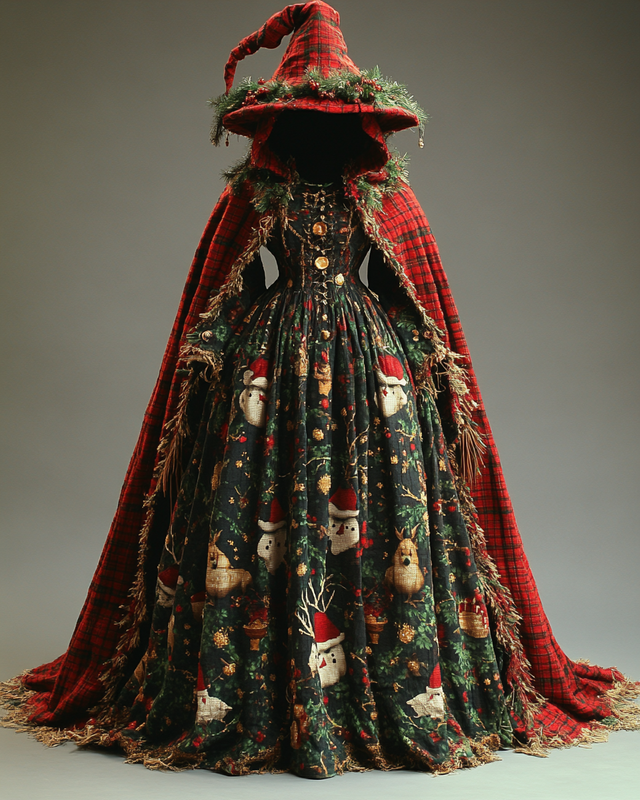 Christmas Themed Voluminous Cape Dress 4017$42.93 USD -