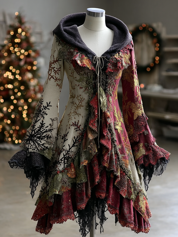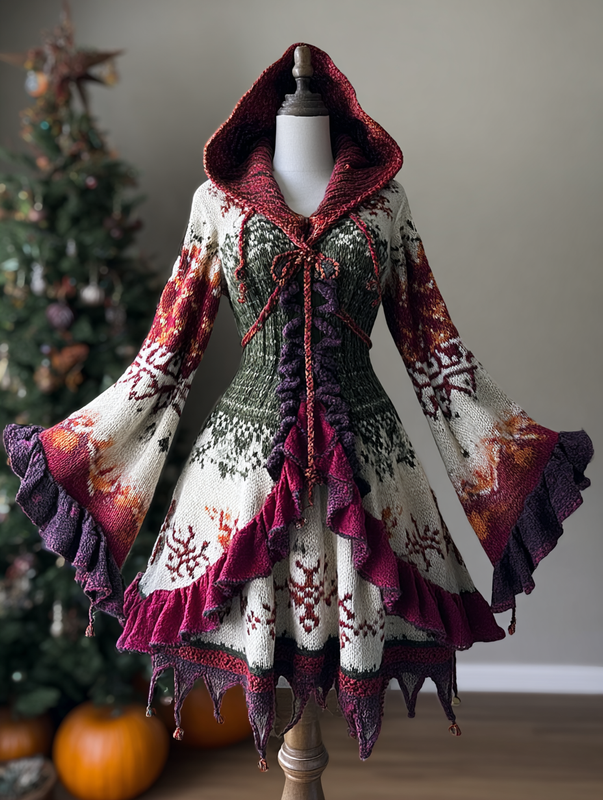 Christmas Themed Voluminous Cape Dress f1a9$42.93 USD -