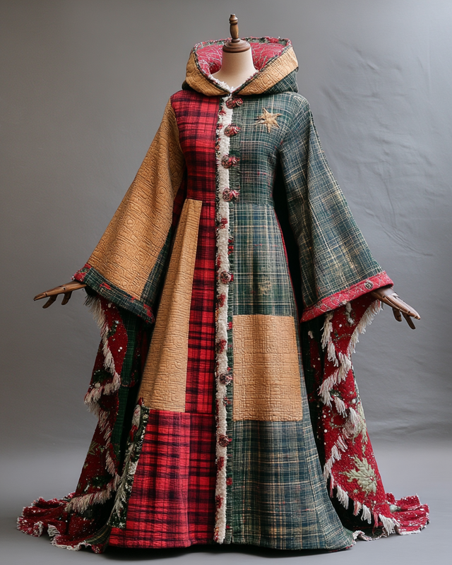 Christmas Themed Voluminous Cape Dress 6ed7$42.93 USD -