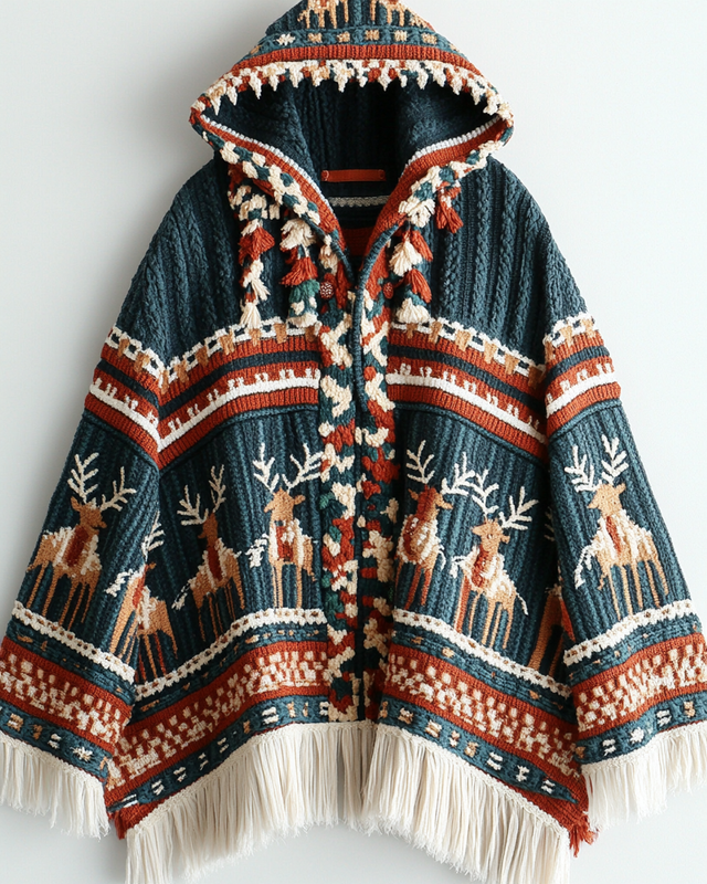 Women's Christmas Contrast Hooded Cape 2dfe$36.75 USD -