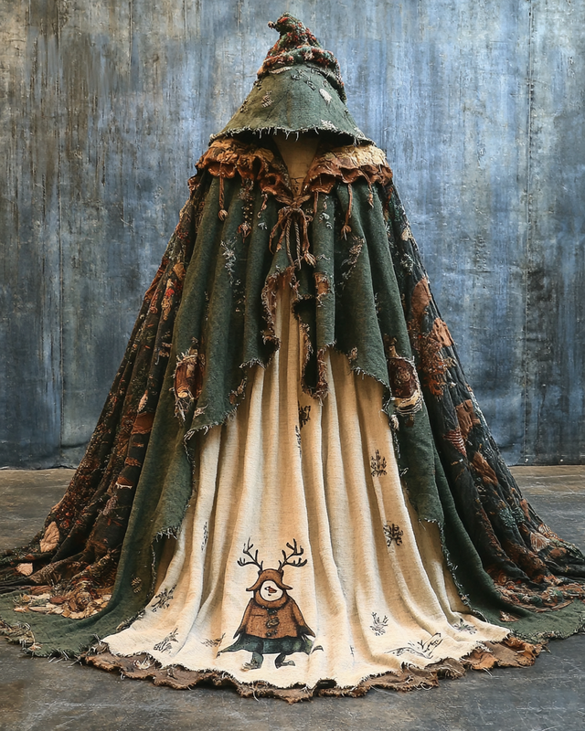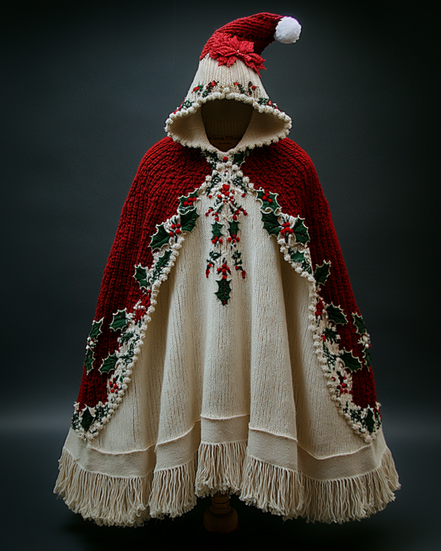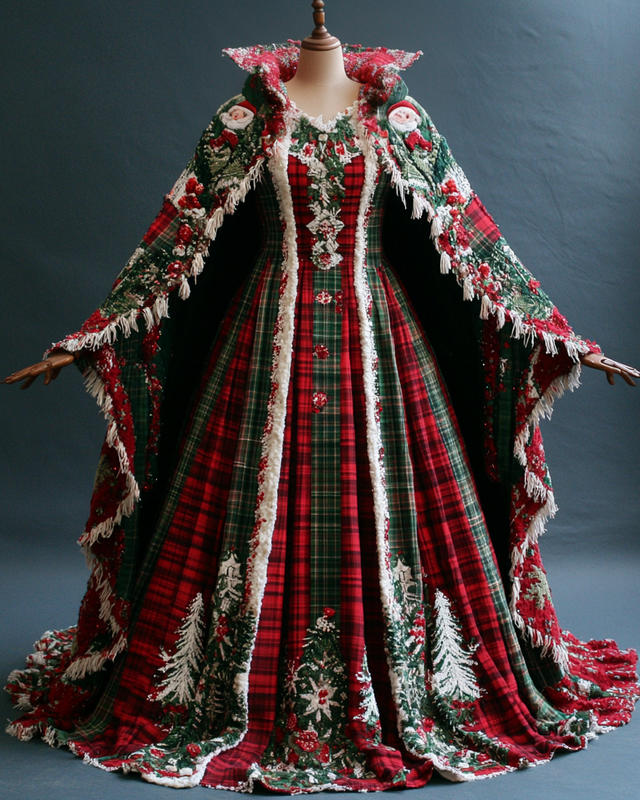 Christmas Themed Voluminous Cape Dress 18a2$42.93 USD -