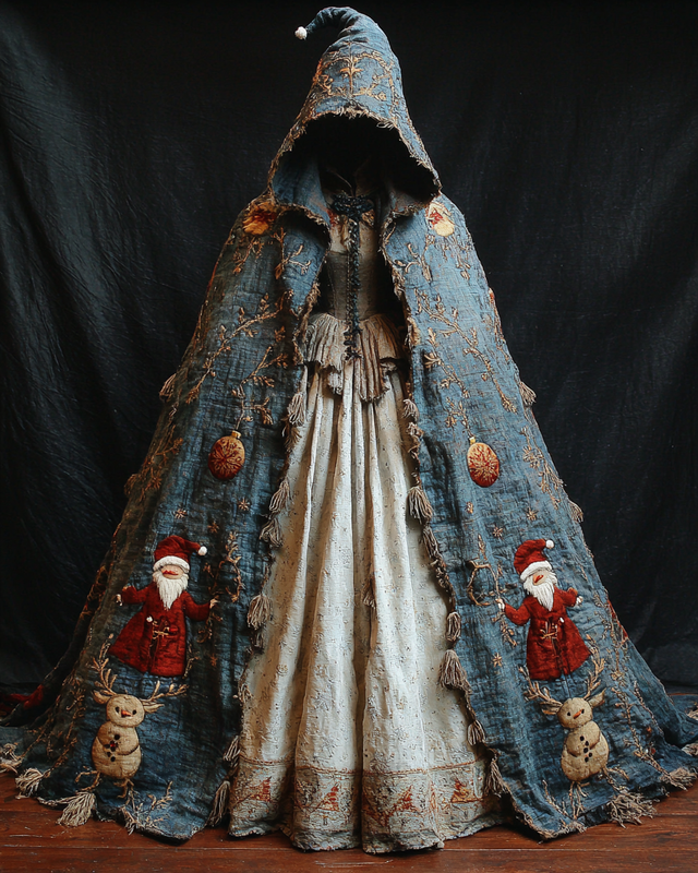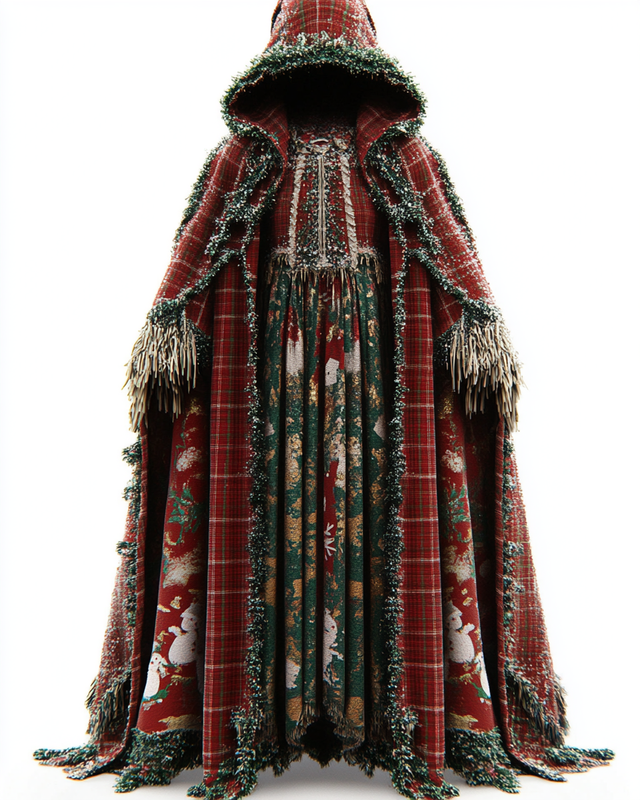 Christmas Themed Voluminous Cape Dress f047$40.94 USD -