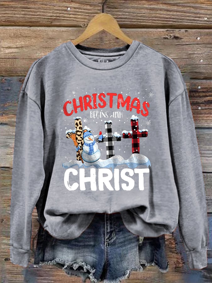 Women's "Christmas Begins With Christ" printed casual sweatshirt$26.24 USD -