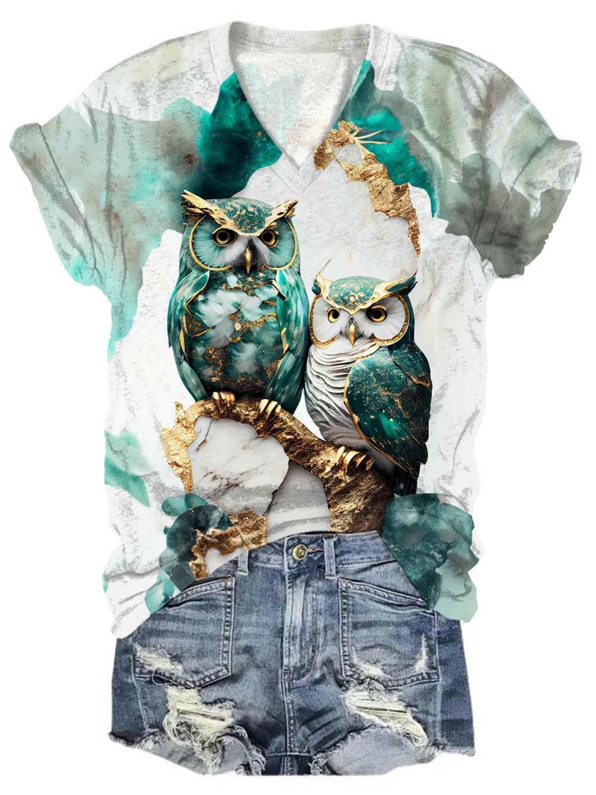 Women's V Neck Owl Print Casual Top$19.99 USD -