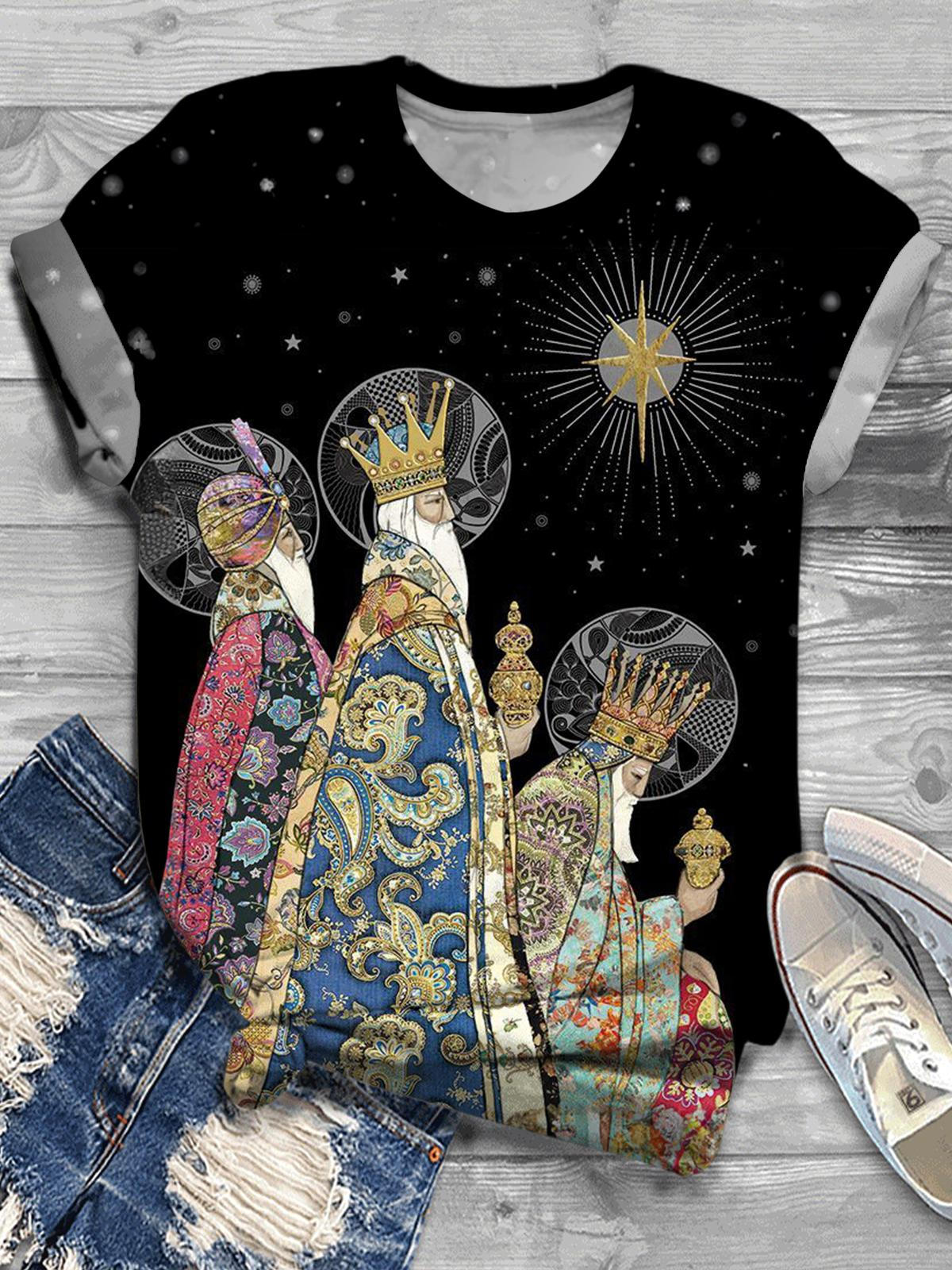 Women's Santa Print French Cashmere V-Neck Top$25.99 USD -