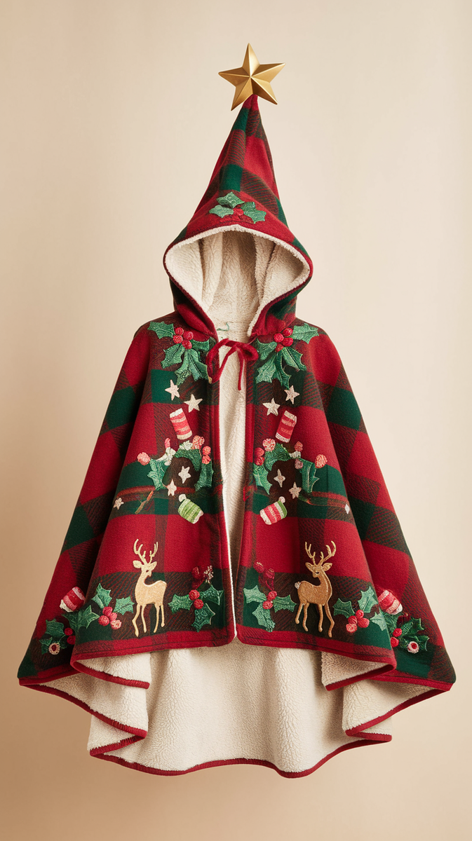 Christmas themed elegant contrasting color hooded cape top coat 3510$52.49 USD -