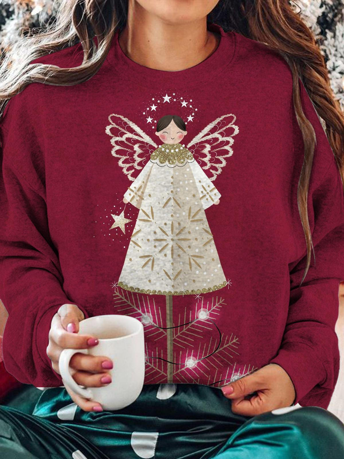 Christmas Angel Print Round Neck Long Sleeve Top$28.99 USD -