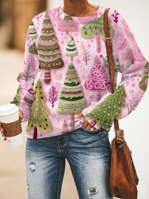 Women's Pink Christmas Tree Print Sweatshirt$30.44 USD -