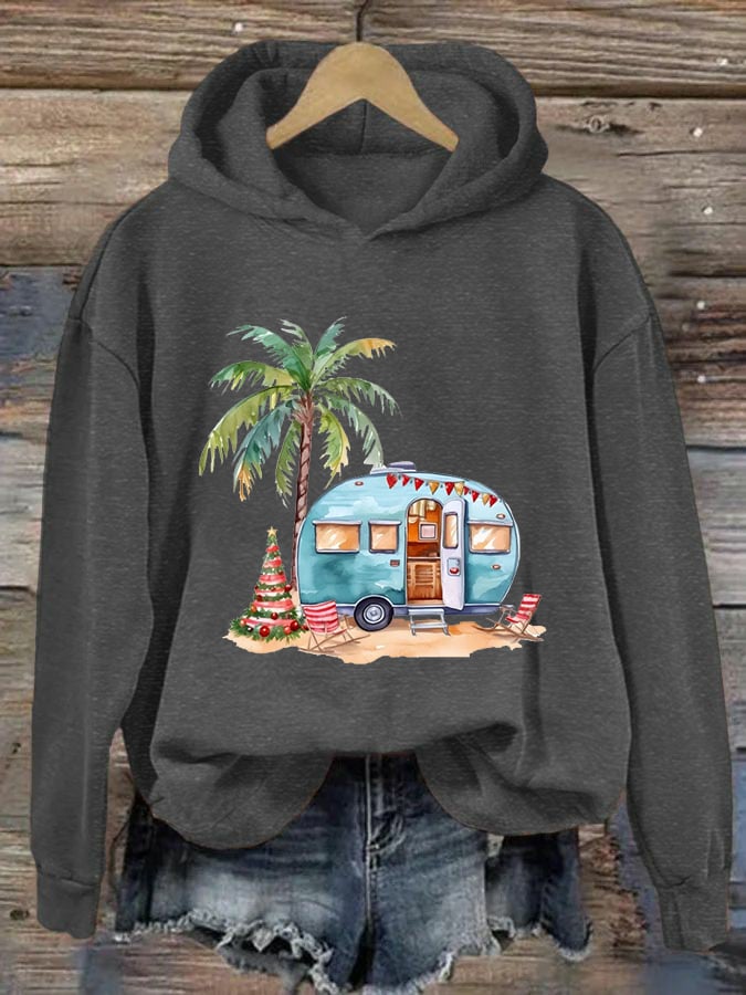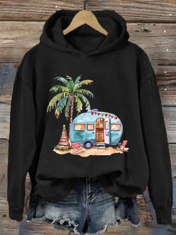 Women's Camper Christmas Print Hoodie$28.34 USD -