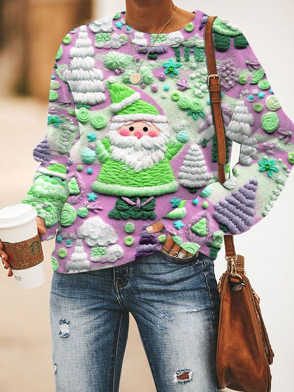 Women's Camfam Christmas Printed Round Neck Long Sleeve Sweatshirt$27.29 USD -
