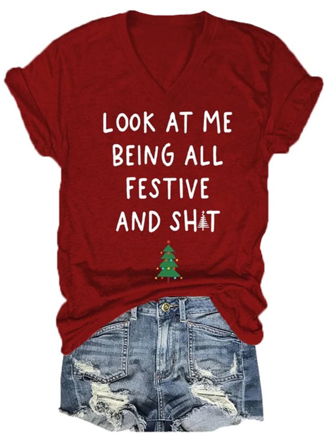 Women'sLook At Me Being All Festive Christmas Print Casual T-Shirt$20.99 USD