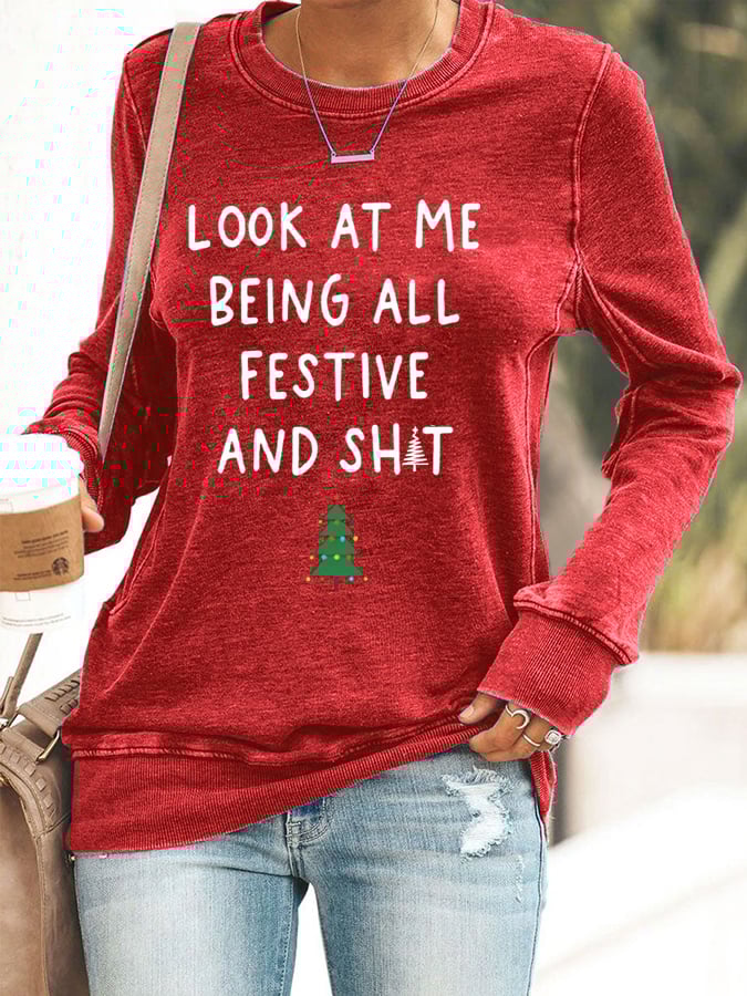 Women's Look At Me Being All Festive And Shit Print Casual Sweatshirt$26.24 USD -
