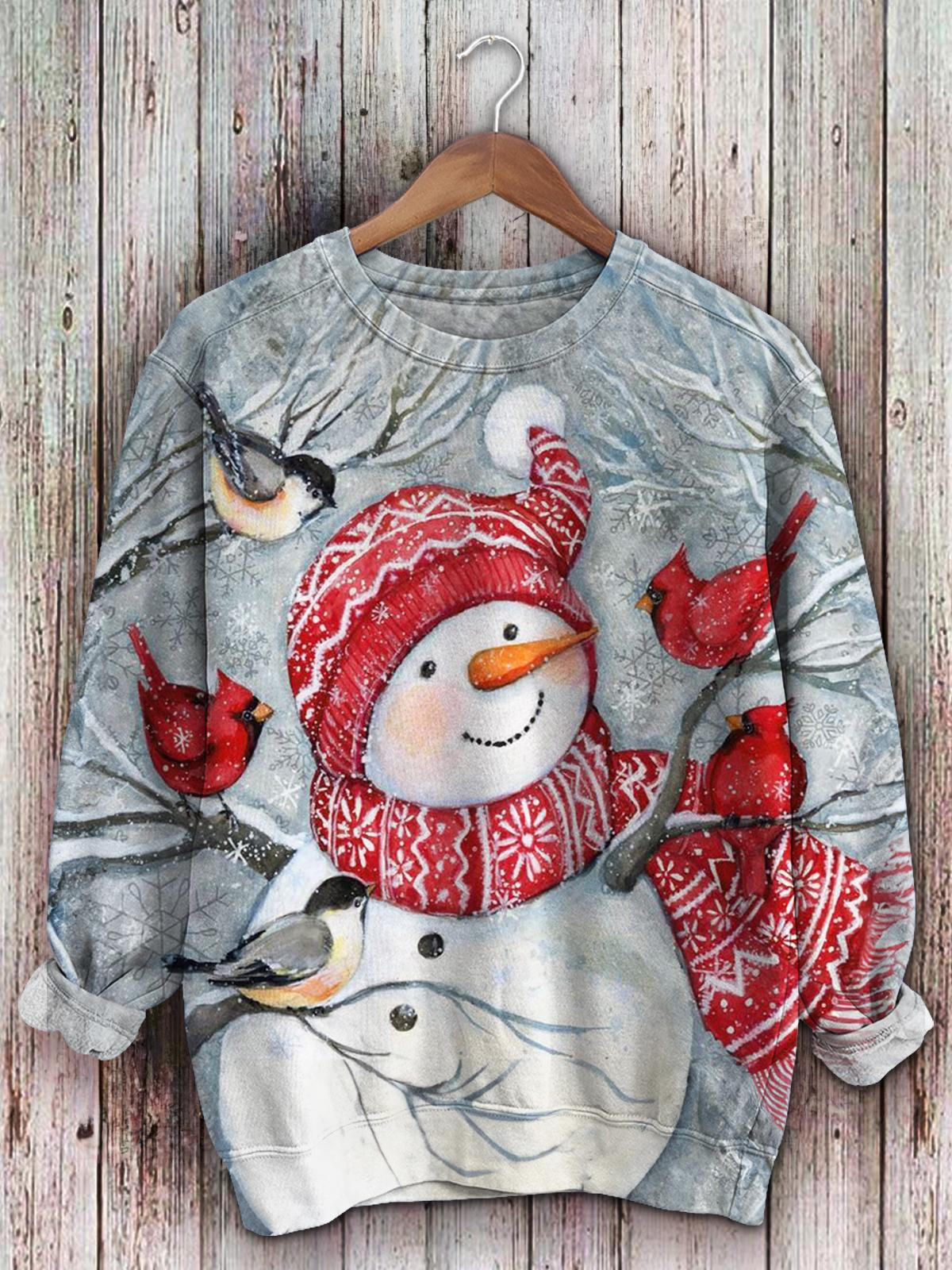 Cardinalis And Snowman Long Sleeve Top$28.34 USD -