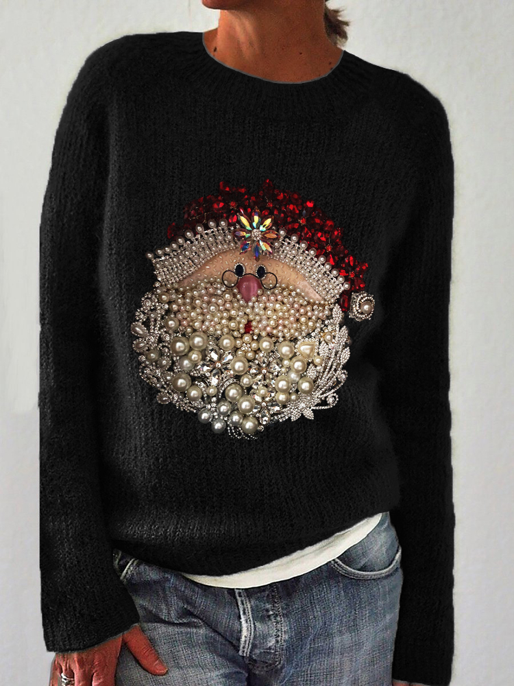 Christmas Santa Claus Jewel Art Cozy Knit Sweater$33.59 USD -