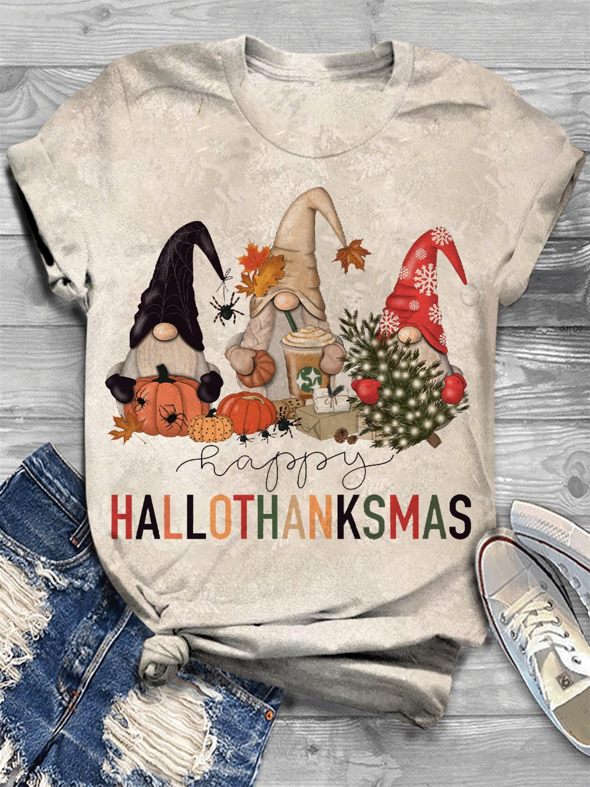 Hallothanksmas Gnomes Crew Neck Tee$20.99 USD -