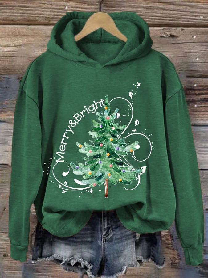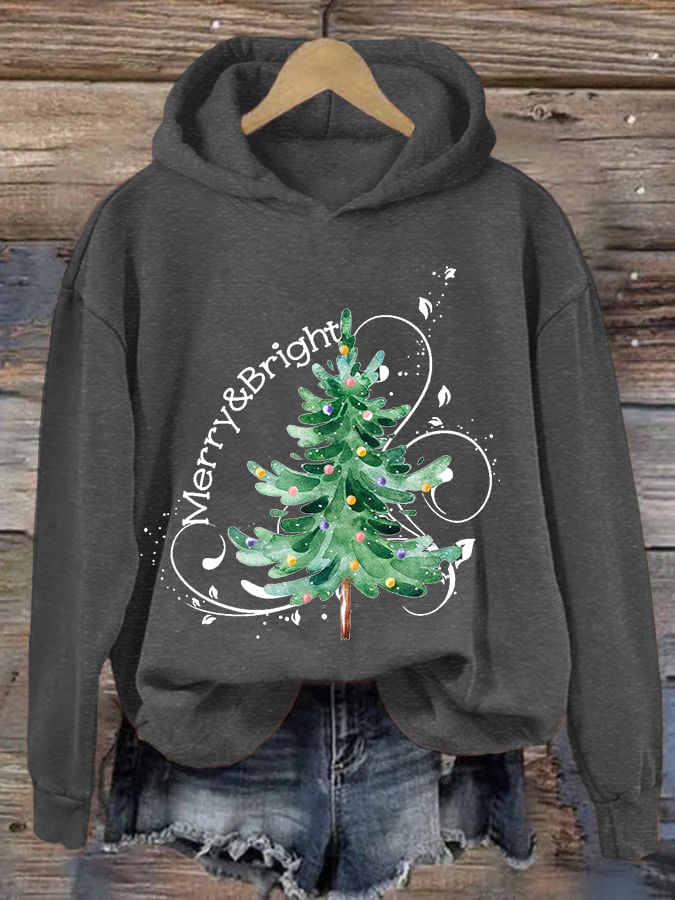 Women's Merry And Bright Christmas Tree Casual Hoodie$27.29 USD -