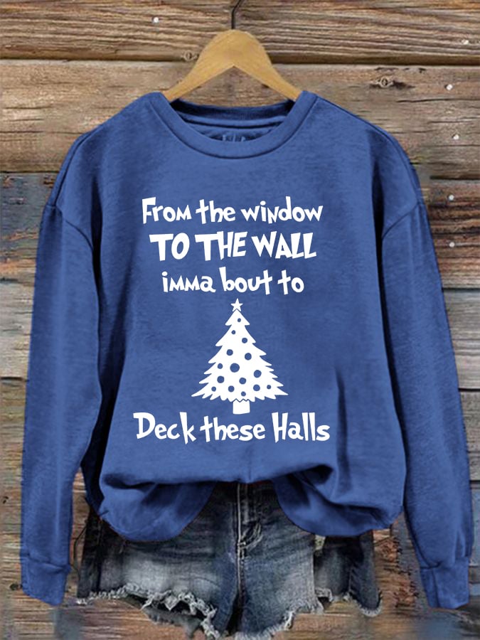 Women's From The Window To The Wall Imma Bout To Deck These Halls Print Sweatshirt$27.29 USD -