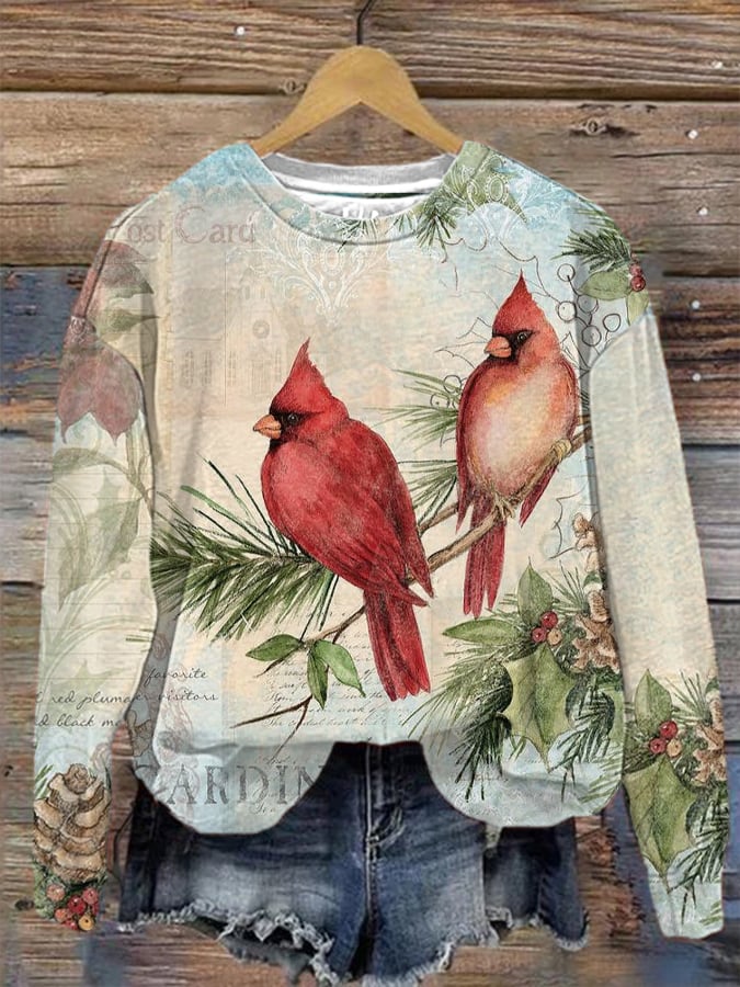 Women's Vintage Christmas Cardinal Bird Print Sweatshirt$27.29 USD -