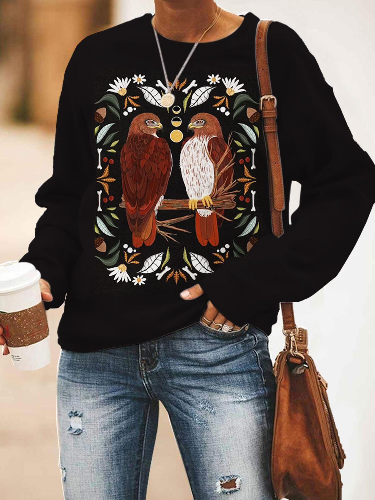 Women's Animal Owl Print Long Sleeve Top$28.34 USD -