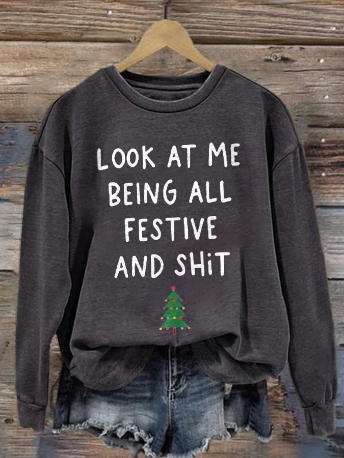 Women's Look At Me Being All Festive And Shit Print Casual Sweatshirt$27.29 USD -