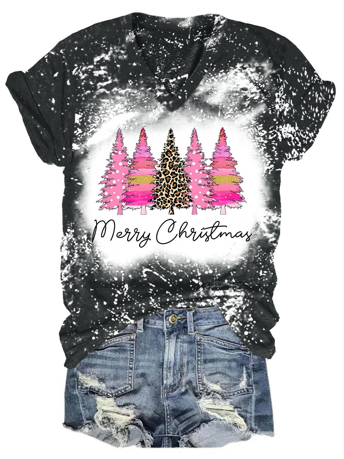 Christmas Tree Tie Dye V-Neck T-Shirt$20.99 USD -