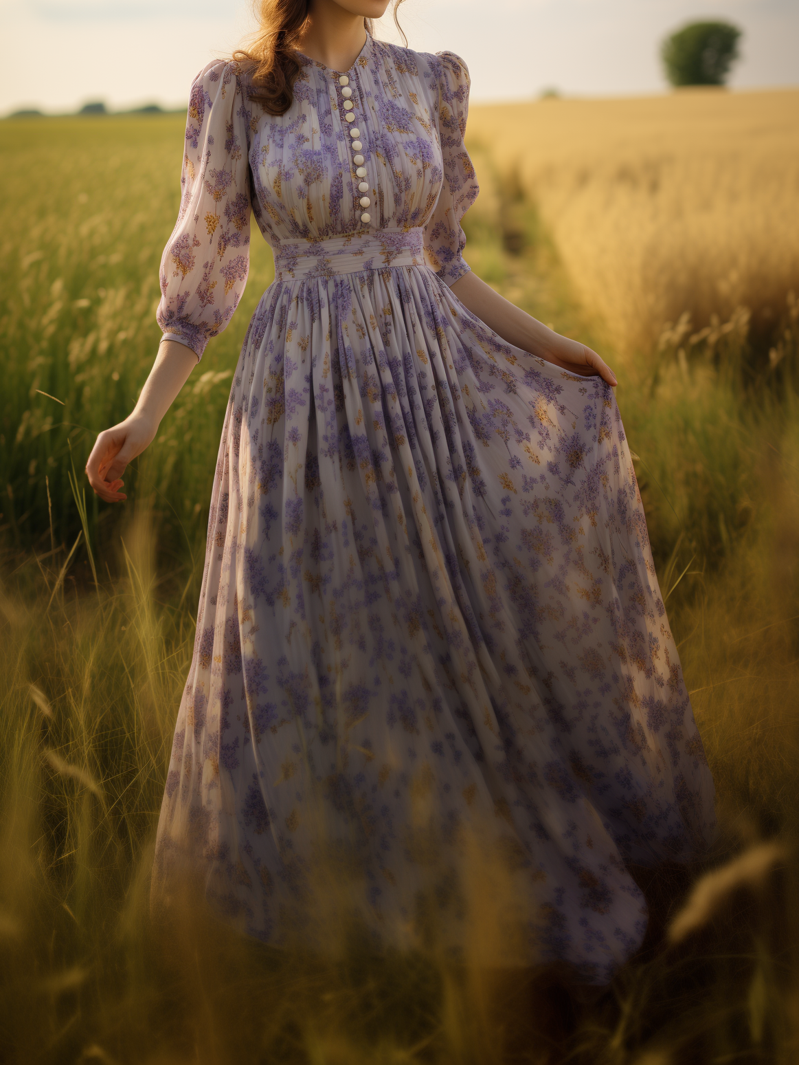 Vintage Classy Long Sleeve Pleated Maxi Dress$61.70 USD -