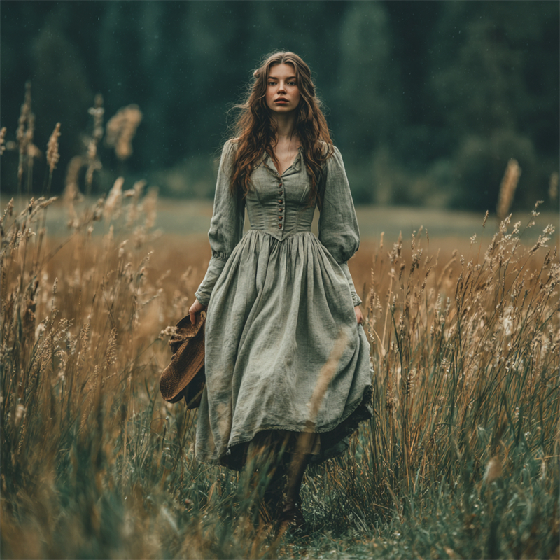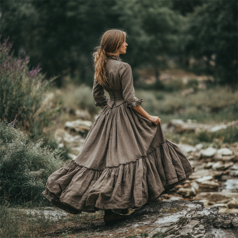 Vintage Medieval Corseted Lace Up Linen Maxi Dress$68.25 USD -