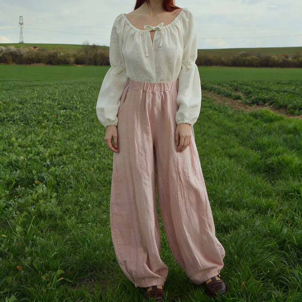 Vintage Distressed Linen Lantern Trousers$48.61 USD -