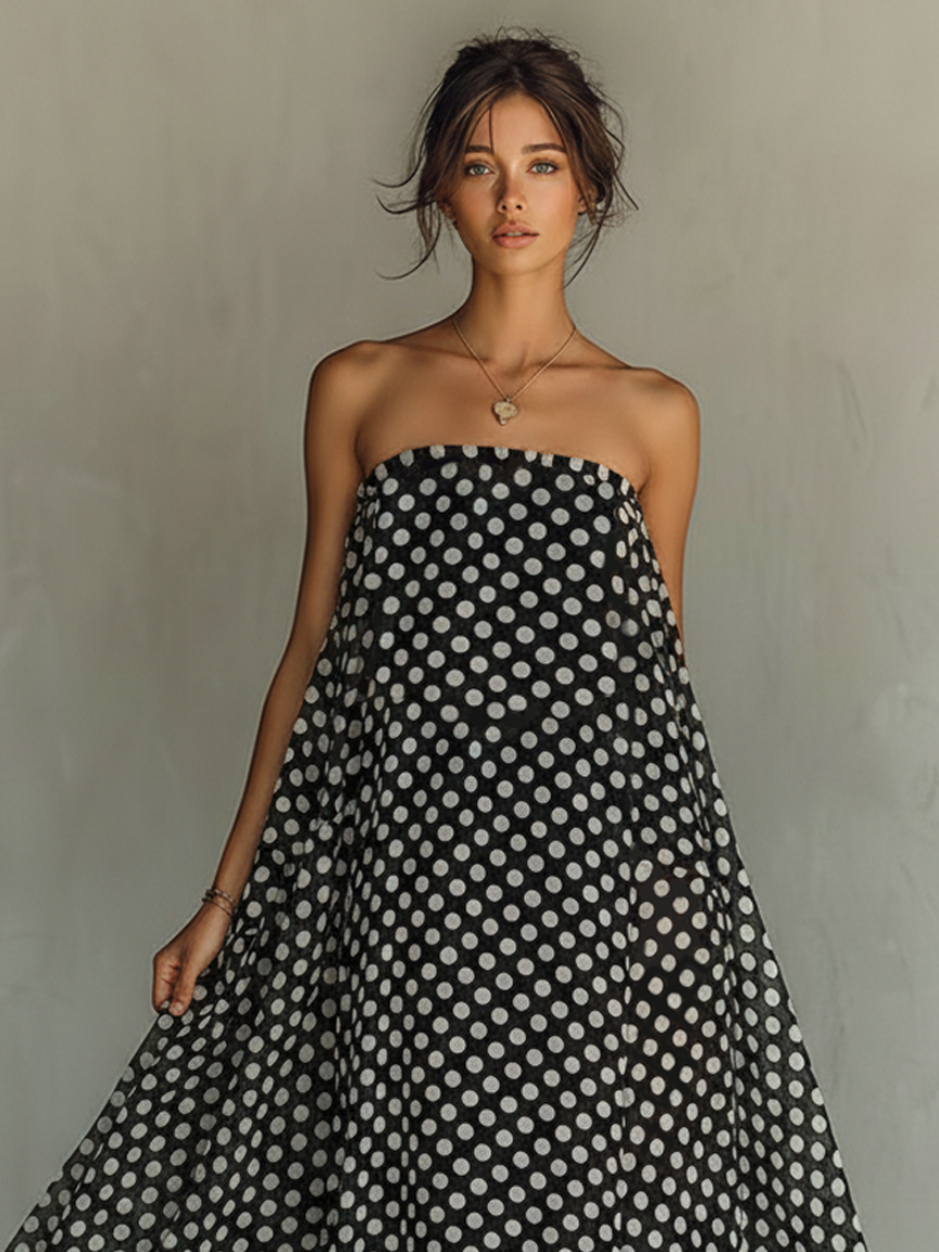 Women's Minimalist Polka Dot Chiffon Strapless Maxi Dress For Vacation MDZ0684B2Y$68.25 USD -