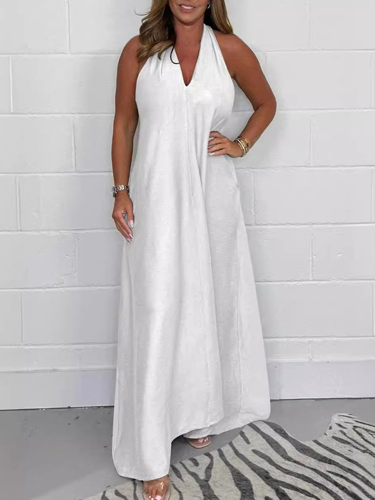 Casual Solid Color Halterneck Sleeveless Deep V Women'S Long Dress$45.81 USD -