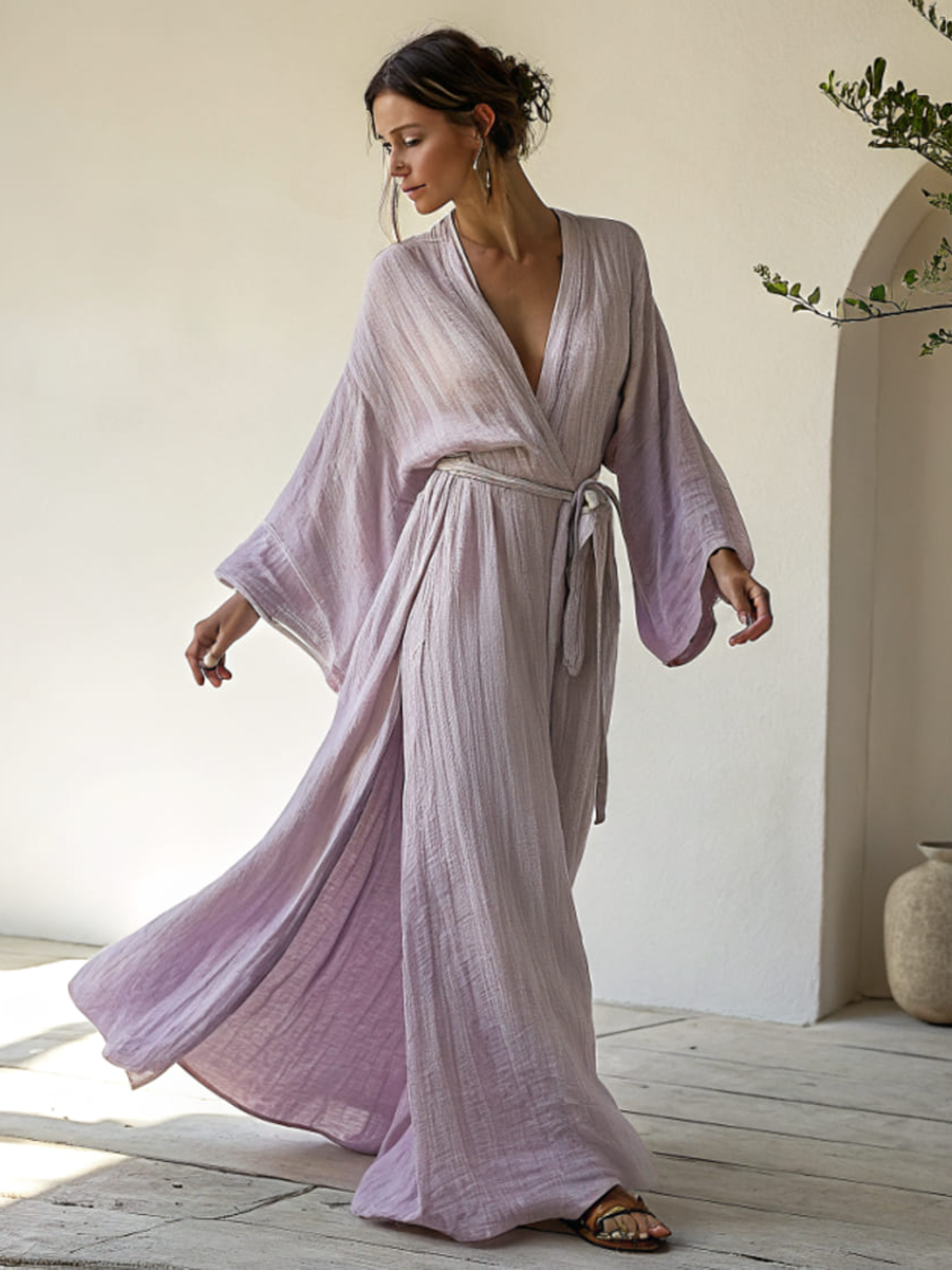 Linen V-neck Casual Kimono Robe (with belt)$37.04 USD -