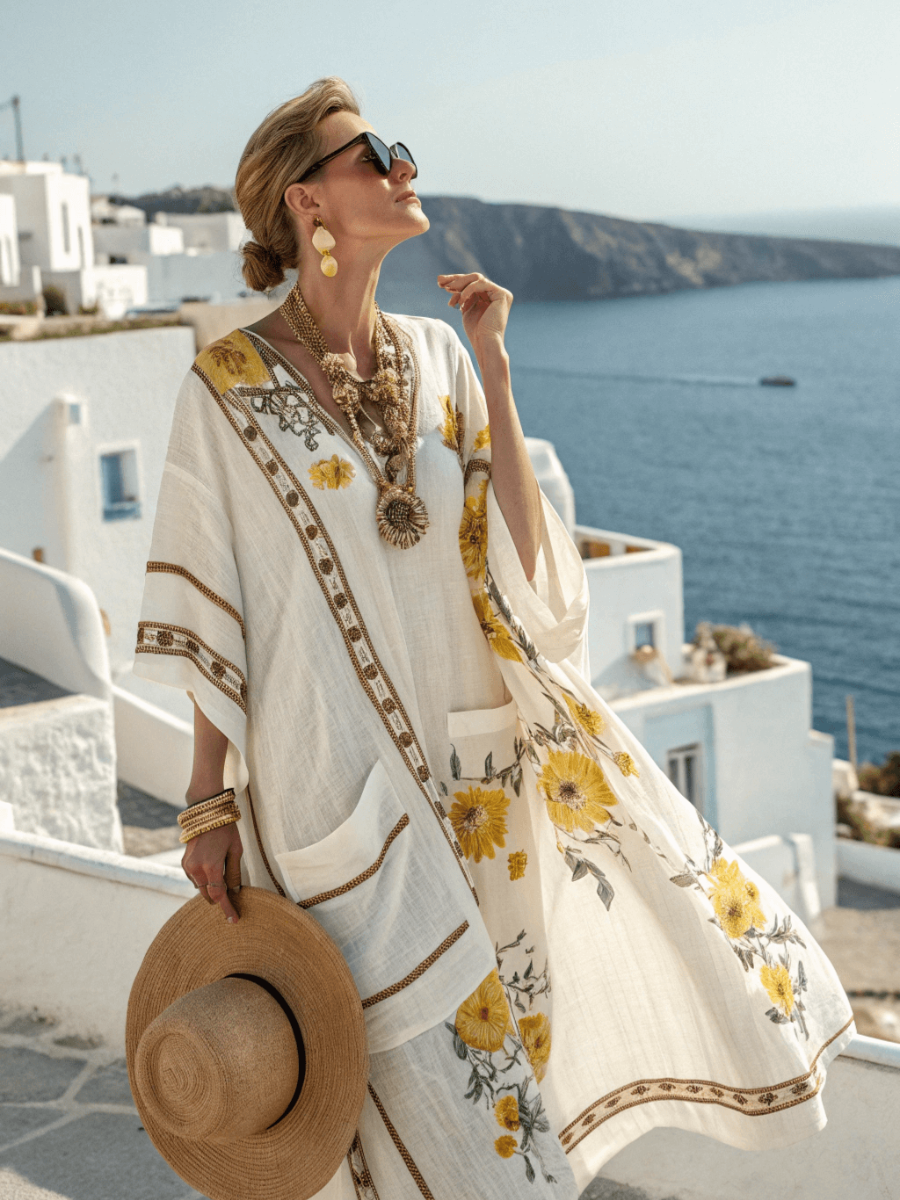 Contton & Linen Long Sleeve Kaftan Maxi Dress$37.04 USD -
