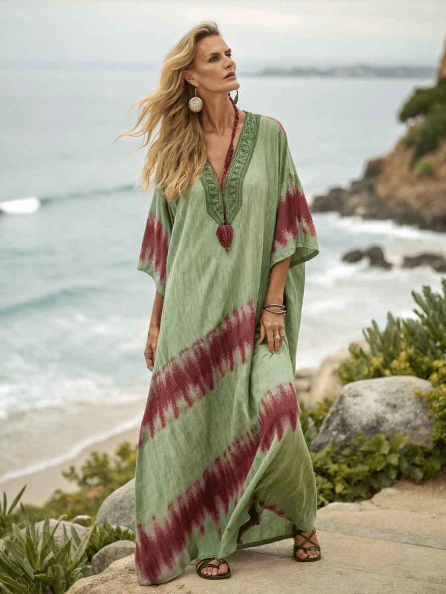 Linen Printed Kaftan Maxi Dress$36.09 USD -