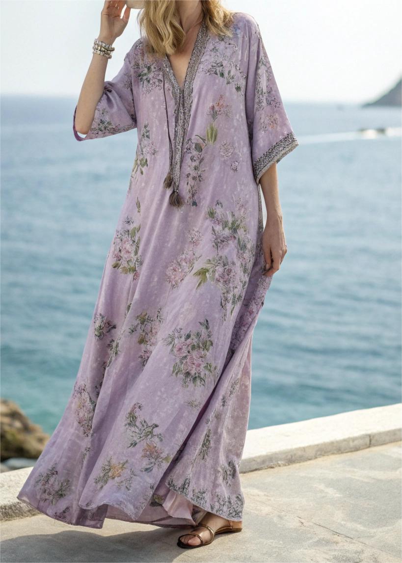 Silk Vintage Print Kaftan Maxi Dress$40.84 USD -